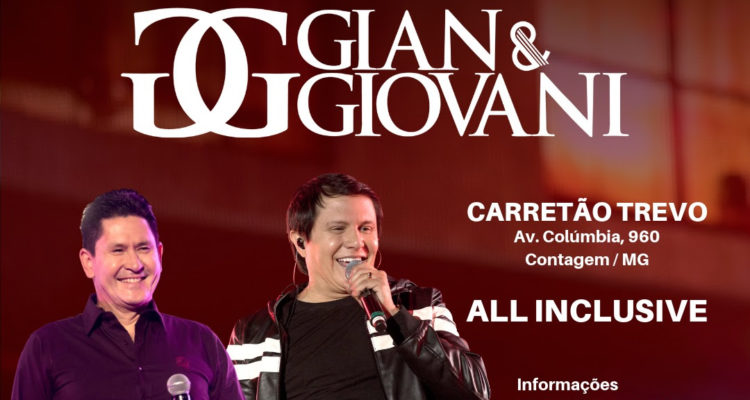 Entre os sucessos que não poderão faltar na apresentação, Gian & Giovani, o clássico “Convite de Casamento”, “Eu Busco Uma Estrela”, “Te Amo”, “Caí no Laço” e muitas outras músicas que fazem parte da carreira dos sertanejos. O show de Gian e Giovani em Contagem é uma realização do Carretão Trevo com a produção da Horta Produções e Eventos. Os ingressos de mesas estão à venda no local e no site www.zapify.com.br.